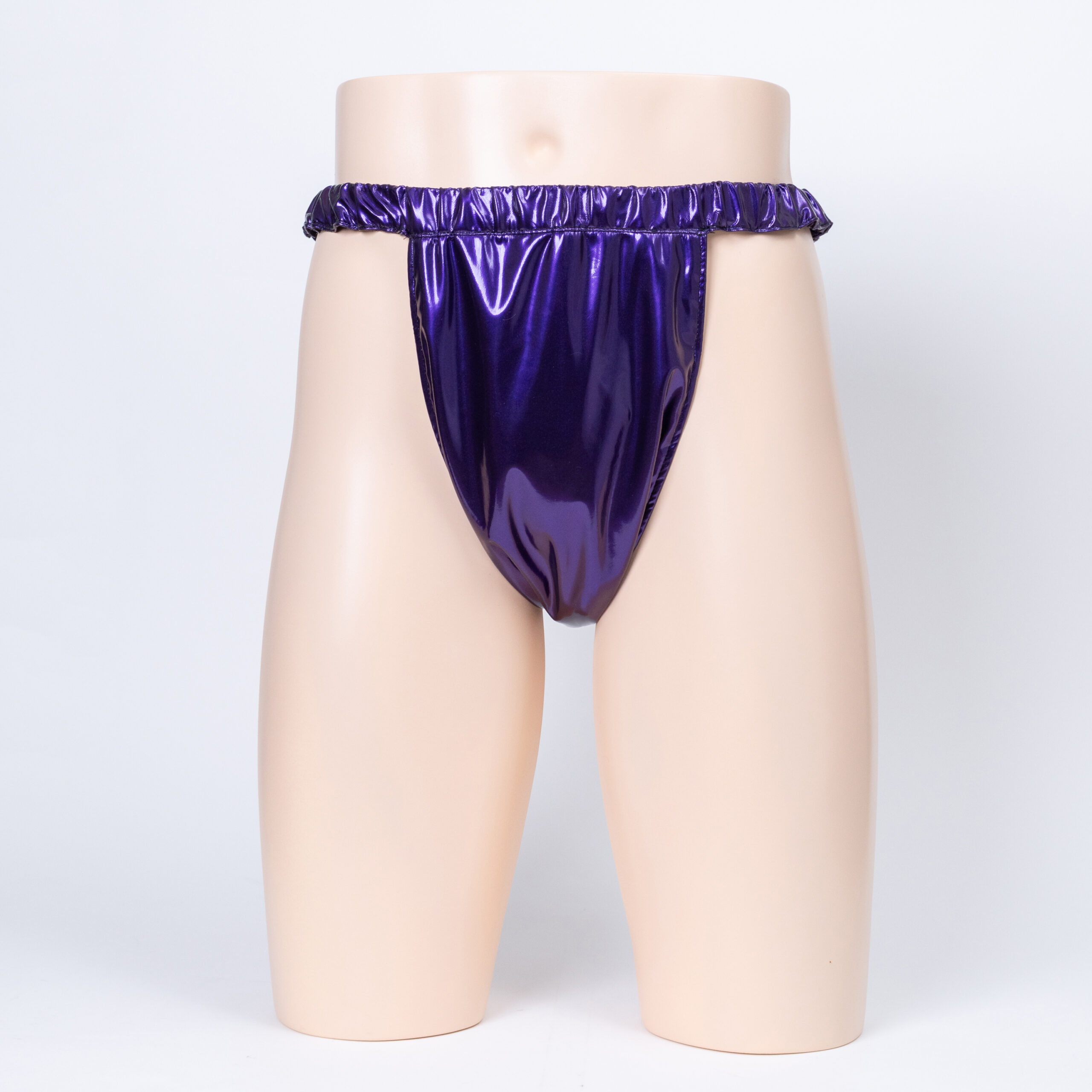 新品【エナメル生地のふんどしパンツ(エナメル裏地付き)】 パープル (メンズS~4Lサイズ) ハンドメイド【受注生産】光沢感・開放感抜群